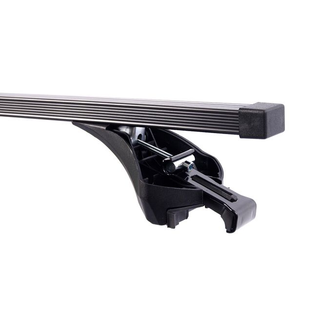 Автобагажник крепится к рейлингу выдвижной регулируемой по наклону скобой с внешней стороны, с внутренней прижимается выступом на опоре.