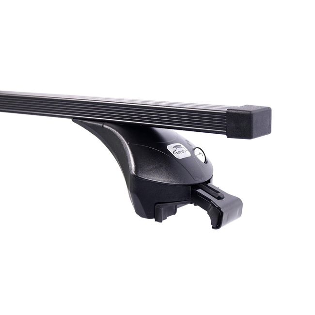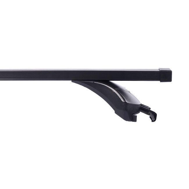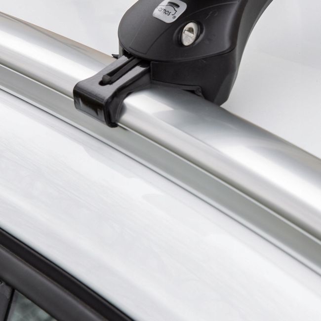 Автобагажник крепится к рейлингу выдвижной регулируемой по наклону скобой с внешней стороны, с внутренней прижимается выступом на опоре.