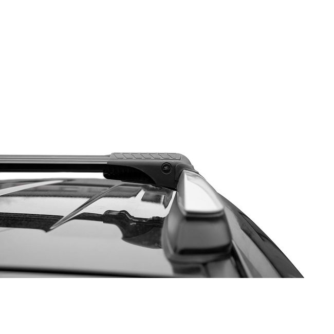 Автобагажник устанавливается между рейлингами автомобиля и не выступает за их края. Вся встроенная система фиксации багажника легко регулируется по ширине и надёжно крепится на рейлингах автомобиля. А после установки каждая из опор багажника запирается на ключ.