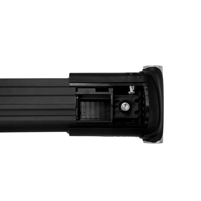 Автобагажник устанавливается между рейлингами автомобиля и не выступает за их края. Вся встроенная система фиксации багажника легко регулируется по ширине и надёжно крепится на рейлингах автомобиля. А после установки каждая из опор багажника запирается на ключ.