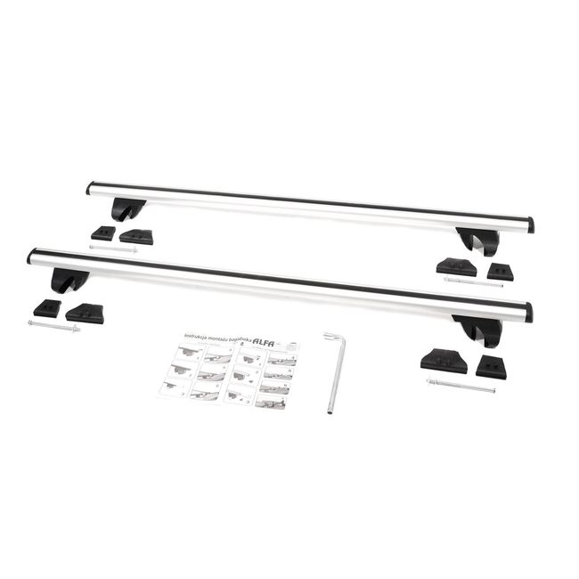 Багажник представляет собой две дуги-поперечины, которые крепятся на рейлинги с помощью четырёх специальных опор и крепёжных элементов.