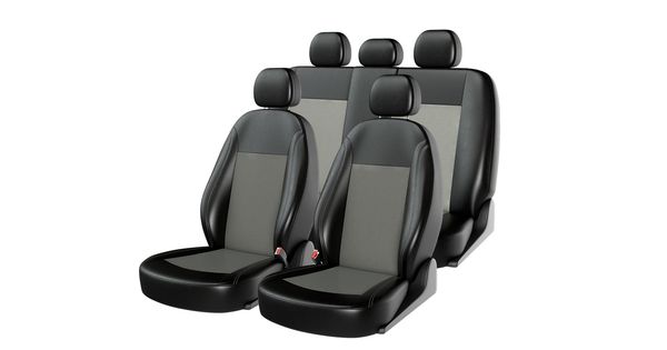 Чехлы на сиденья экокожа «ATOM LEATHER», чёрный/серый/серый, универсальные, 10947