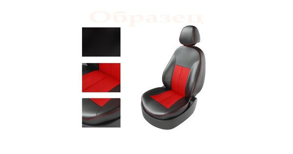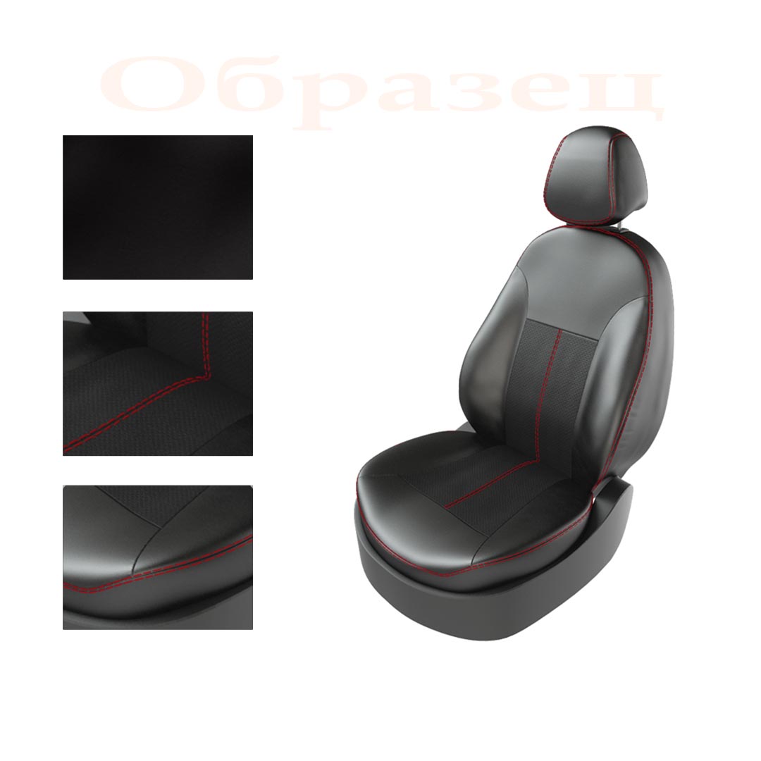 Авточехлы для KIA RIO IV 2011- SEDAN TURBO, задняя спинка раздельная, чёрный/чёрный/красный