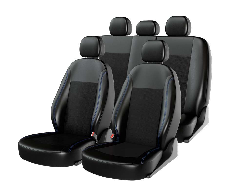 Чехлы на сиденья экокожа «ATOM LEATHER SMALL», чёрный/чёрный/синий , универсальные, 10974