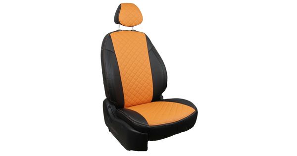 Авточехлы для FORD FOCUS 3 III 2011- SEDAN, HATCHBACK, WAGON Ambiente, Trend, экокожа, вставка ромб, чёрный/оранжевый
