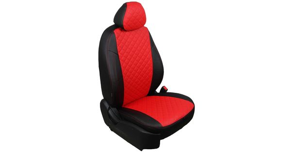 Авточехлы для MITSUBISHI OUTLANDER III 2012-, экокожа, вставка ромб, чёрный/красный