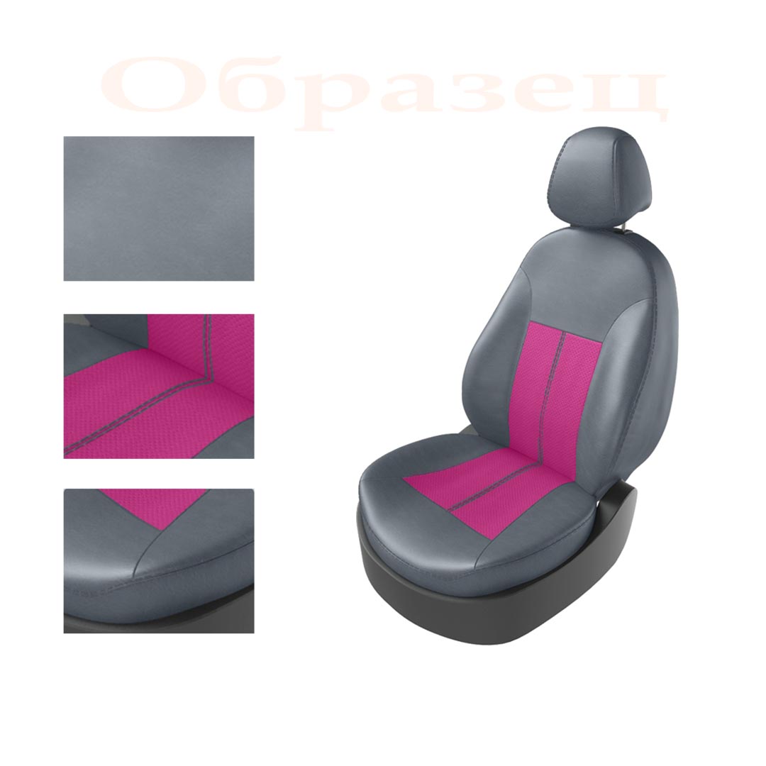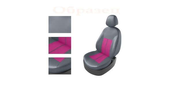 Авточехлы для KIA RIO III 2011-2017 СЕДАН, задняя спинка раздельная, серый/розовый/серый