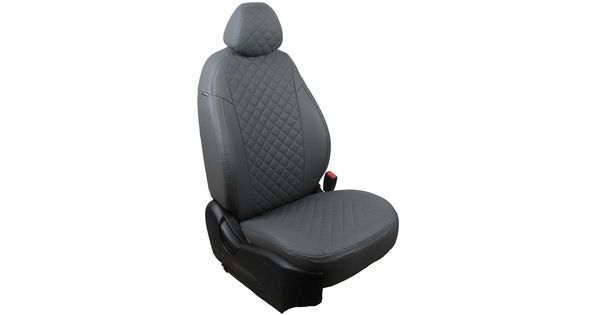 Авточехлы для RENAULT DUSTER 2011-2014 40/60, с подушками безопасности, экокожа, вставка ромб, серый/серый