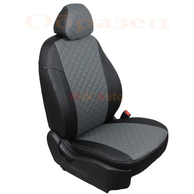 Чехлы из экокожи KIA CERATO IV 2018-, вставка ромб, чёрный/серый