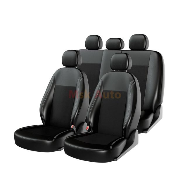 Чехлы на сиденья экокожа «ATOM LEATHER», чёрный/чёрный/белый, универсальные, 10949