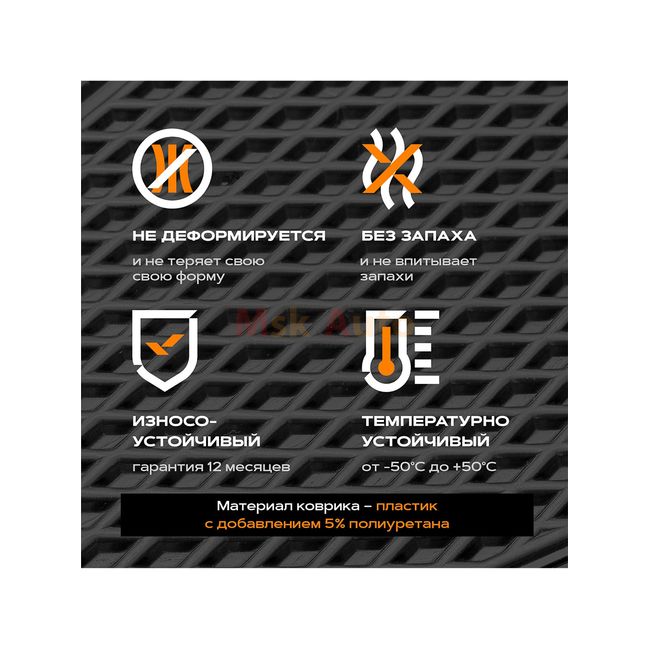 Материал коврика - термоэластопласт (пластик с добавлением 5% полиуретана). Просто вынимать и легко мыть.