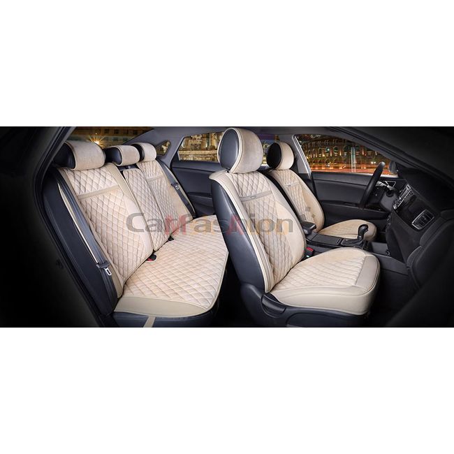 Каркасные накидки 3D на сиденья автомобиля BARCELONA PLUS комплект, велюр, бежевый