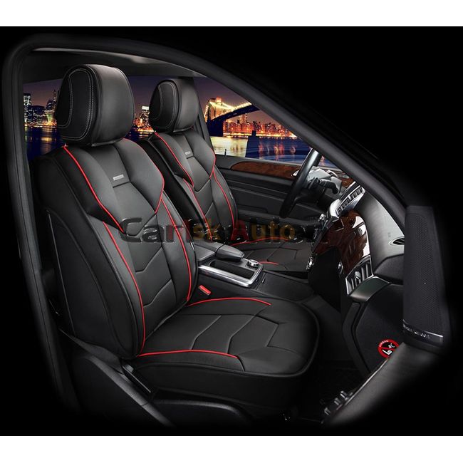 Каркасные накидки 3D на сиденья автомобиля SAMURAI передние, экокожа/нубук, красный, чёрный, чёрный