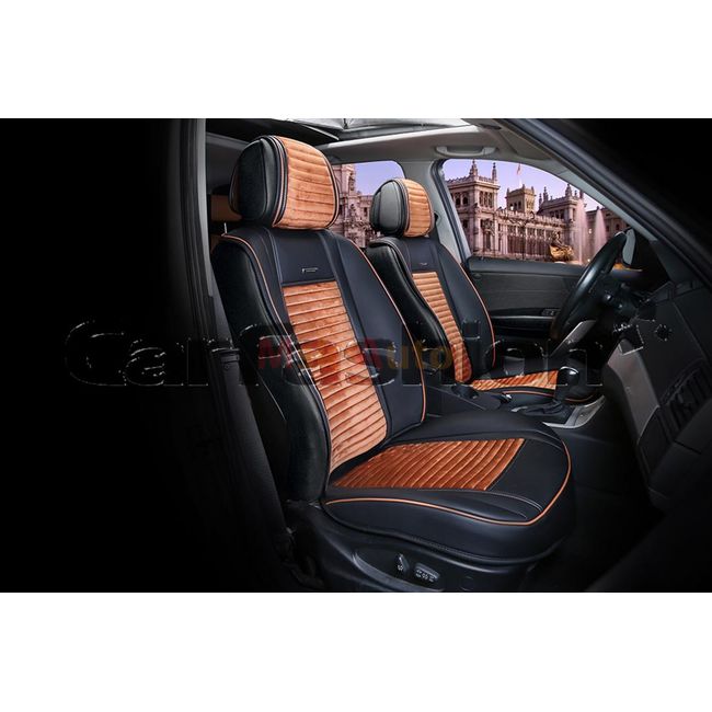 Накидки на сиденья автомобиля MADRID передние, экокожа/велюр, чёрный, коричневый, коричневый, коричневый