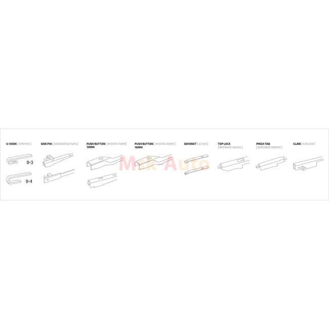 Дополнительные адаптеры позволяют установить щётку практически на все автомобили. Эргономичные стильные адаптеры надёжно фиксируют щётку стеклоочистителя.